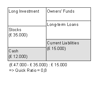 The current ratio and the acid test use balance sheet data only. We can imagine a situation where current assets total £ 1.000.000 and current liabilities total £ 800.000. The resulting current ratio would be 1,25. It is the same ratio a company with £ 2.500 current assets and £ 2.000 current liabilities would achieve. Now imagine in both cases the sales would sum up to £ 1.250.000. In the first case the working capital ratio would have a value of 16% . While in the second case this ratio would total 0,04%. As we can easily see from this very low working capital to sales ratio, the level of business does not correspond to the firms capital resources. A falling working capital ratio can be a sign of overtrading. This expression "is used to describe a situation where there are not sufficient resources in the balance sheet to carry the level of existing business."