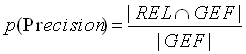 Precision beschreibt den Anteil der relevanten Dokumente an den gefundenen Dokumenten, Recall gibt den Anteil der relevanten Dokumente an, die gefunden wurden. Dies kann durch folgende Formeln beschrieben werden: