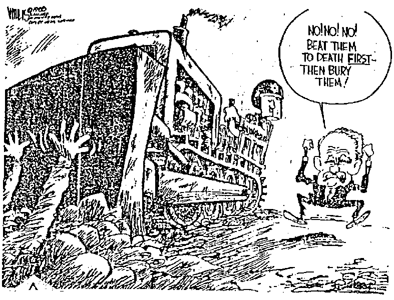 "Wir ermordeten (die Libanesen) aus dem Gefühl der uns eigenen Arroganz. Nun, da auch das Weiße Haus, der Senat, das Pentagon und ein Großteil der amerikanischen Medien in unseren Händen sind, haben wir die Gewißheit, alles tun zu dürfen, was wir wollen... Und wir haben das Recht, 16.000 Granaten auf ihre Dörfer und Städte zu schiesen. Und wir haben das Recht zu morden, ohne uns schuldig zu fühlen." (Ari Shavit, New York Times, 27. Mai 1996)