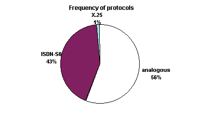 • 43% of all telephone- or data lines use the ISDN-protocol, 56% are analogous and 1% is X.25-data lines.