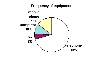 • The telephone has a share of 70% of all equipment (in pieces), cellulars 15%, computers 10% and fax machines 5%.