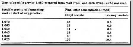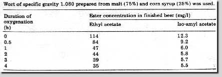 Einer Erhöhung des Sauerstoffangebotes in der Würze führt also zu einer Verringerung der Estergehalte und zusätzlich zu einer Erhöhung der Vergärungsrate.