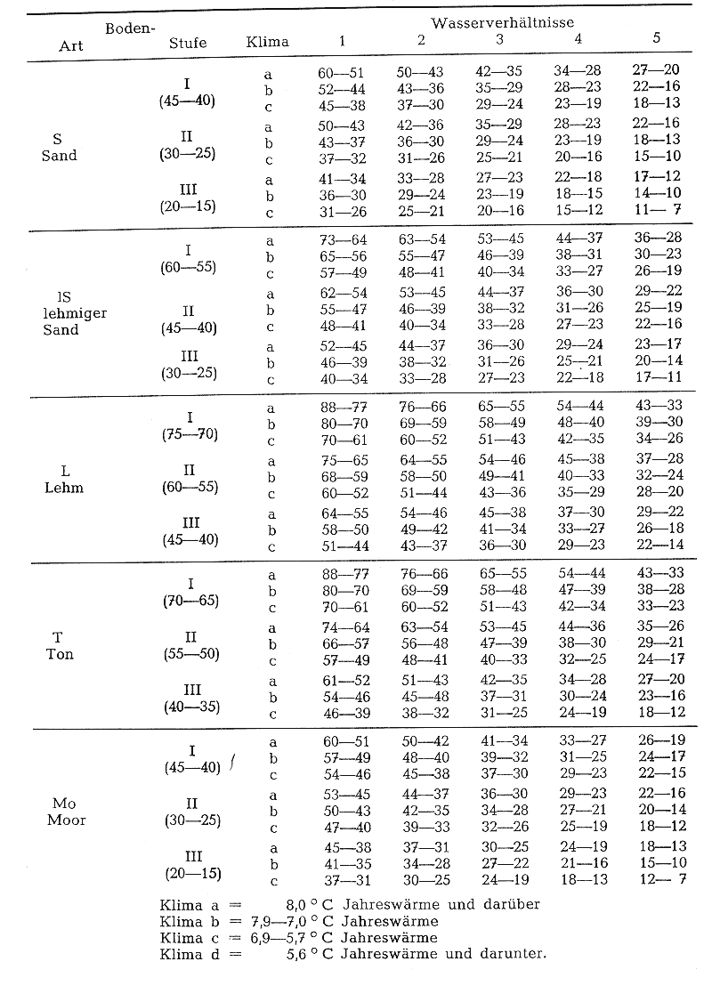 Nach diesen Variablen wird aus dem Ackerschätzungsrahmen die Bodenzahl ermittelt. Bodenzahlen reichen von 100 (guter Boden z. B. in den Gebieten um Magdeburg) bis 7 (schlechter Boden). Die Bodenzahlen sind Verhältniszahlen, die Ertragsunterschiede, die alleine vom Boden her bestimmt sind beschreiben sollen. Als Bezugsgrößen gelten folgende Klima- und Geländeverhältnisse: 8 °C mittlere Jahrestemperatur, 600 mm Niederschlag, ebene bis schwach geneigte Lage und optimaler Grundwasserstand. Außerdem wird von einer mittelbäuerlichen Betriebswirtschaftsstruktur ausgegangen.