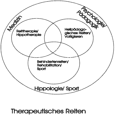 Die schematische Darstellung von HEIPERTZ zeigt die Bereiche des Therapeutischen Reitens und ihre Zuordnung zu den Fachdisziplinen:
