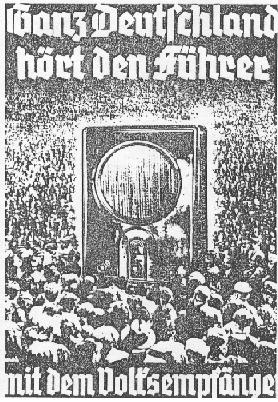Die Nationalsozialisten kannten die Wirkung, die von der Rundfunkpropaganda ausging, genau. Dazu erklärte Joseph Goebbels 1933 gegenüber der Intendantenkonferenz seine rundfunkpolitischen Vorstellungen "Ich halte den Rundfunk für das allermodernste und das allerwichtigste Massenbeinflussungsmittel., das es überhaupt gibt. ... Der Rundfunk muß der Regierung die fehlenden 48 Prozent zusammentrommeln, und haben wir sie dann, muß der Rundfunk die 100 Prozent halten, muß sie verteidigen, muß sie innerlich so durchtränken mit den geistigen Inhalten unserer Zeit, daß niemand mehr ausbrechen kann." (zit. in: Sarkowski, H., 1990, S. 8, S. 9)