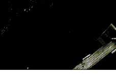 Das Baugerüst, dessen eine Ecke von einer nackten Birne beleuchtet wird, jetzt im Dunkel des Abends. Schwenk auf das Stadion. Die Lampen heben sich vom dunklen Hintergrund ab. /