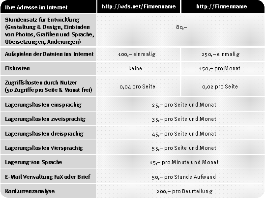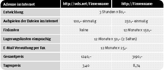 2.5 Kosten und Serviceleistungen bei einer Internet-Präsentation